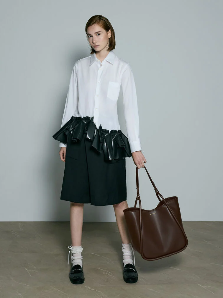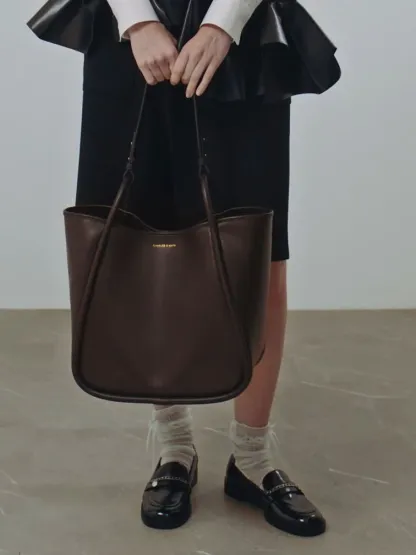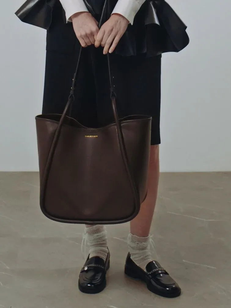 This Lyla tote bag in espresso brown features a slouchy silhouette and a roomy interior. Carry it with relaxed blazers and cropped trousers for an ensemble that is casually polished and effortlessly adaptable.