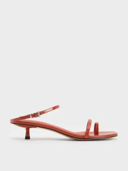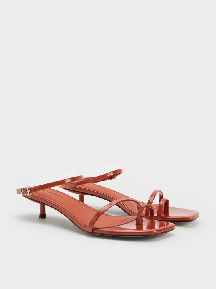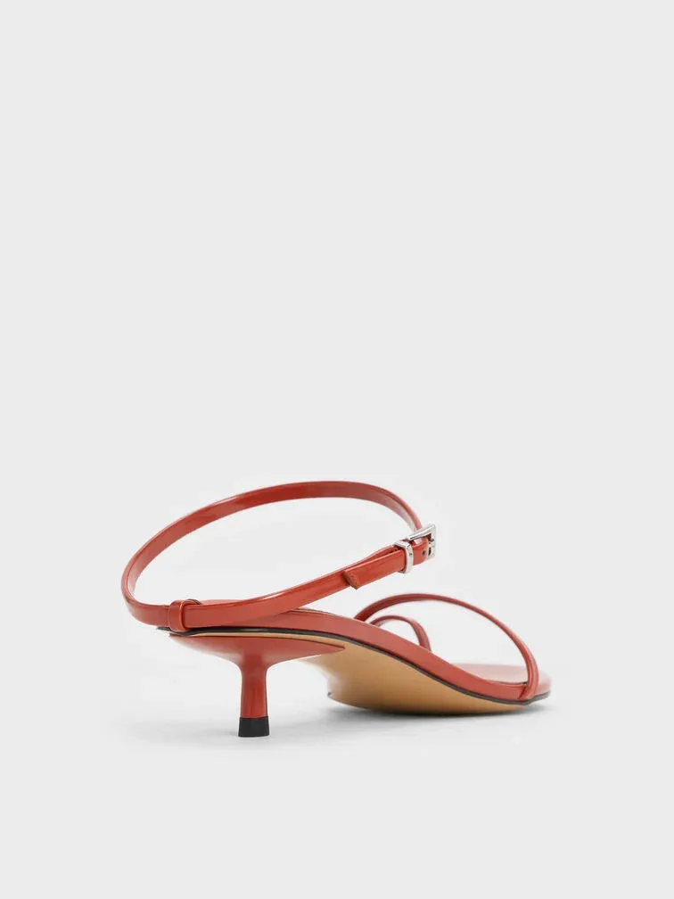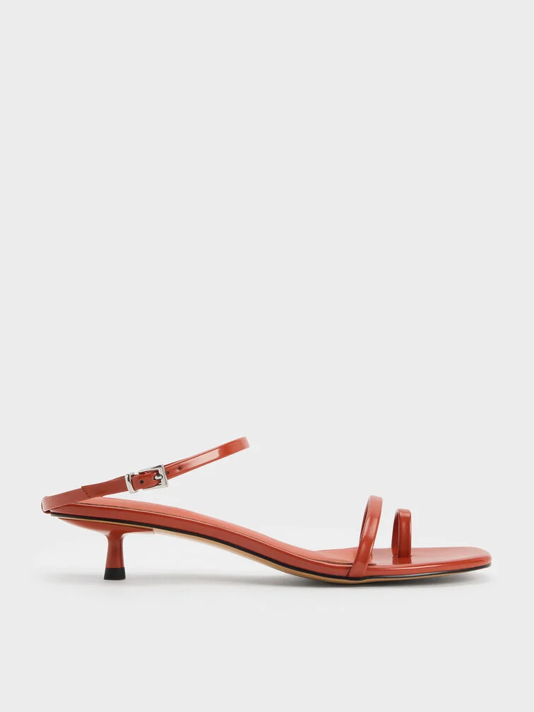 These Mariah sandals in brick feature a strappy design, kitten heels, toe-ring details, and neat square toes. Wear them with trousers or skirts for a classic look that balances timeless elegance with everyday practicality.