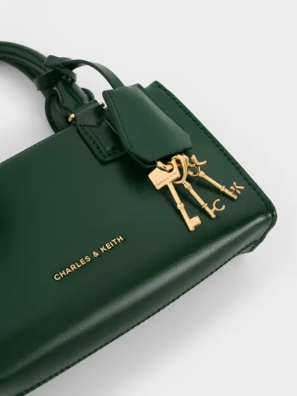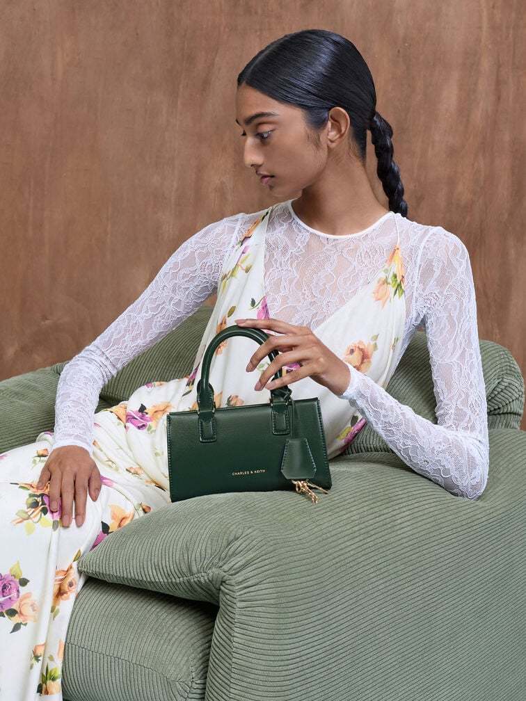 This Kerry top handle bag in dark green features a structured silhouette, a top-zip closure, double handles, a detachable keychain and a detachable strap that can be adjusted to your preferred drop length. A great everyday bag, it can be styled with both workwear and weekday looks.