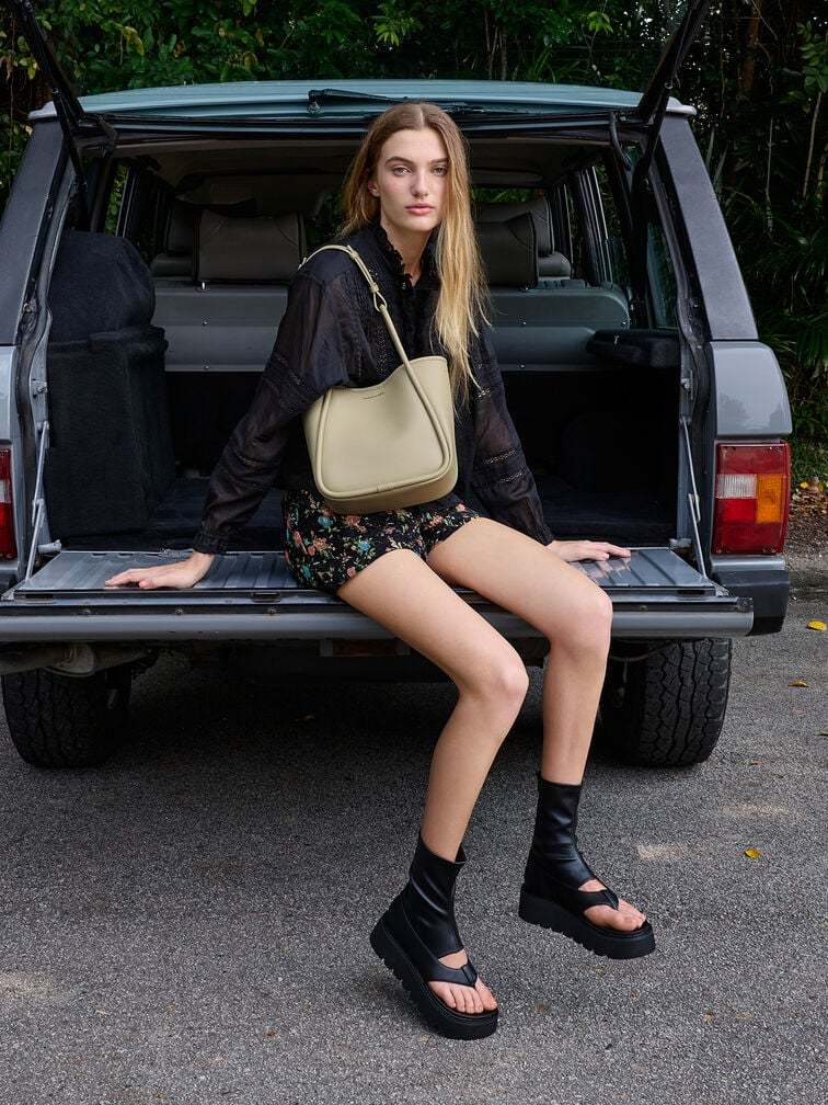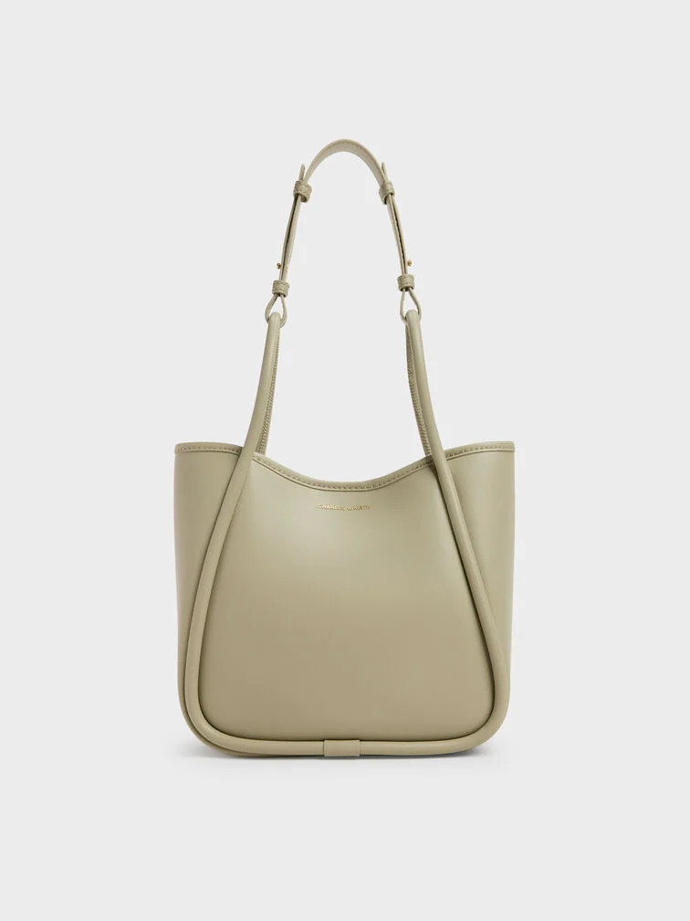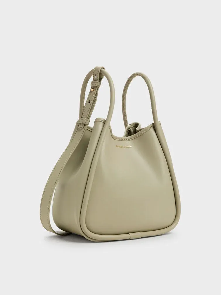 This mini Lyla tubular tote bag in pale olive features a softly structured silhouette, distinctive tubular straps and a generously sized interior that can easily hold all your daily essentials. Carry it to introduce soft colour to your everyday looks.