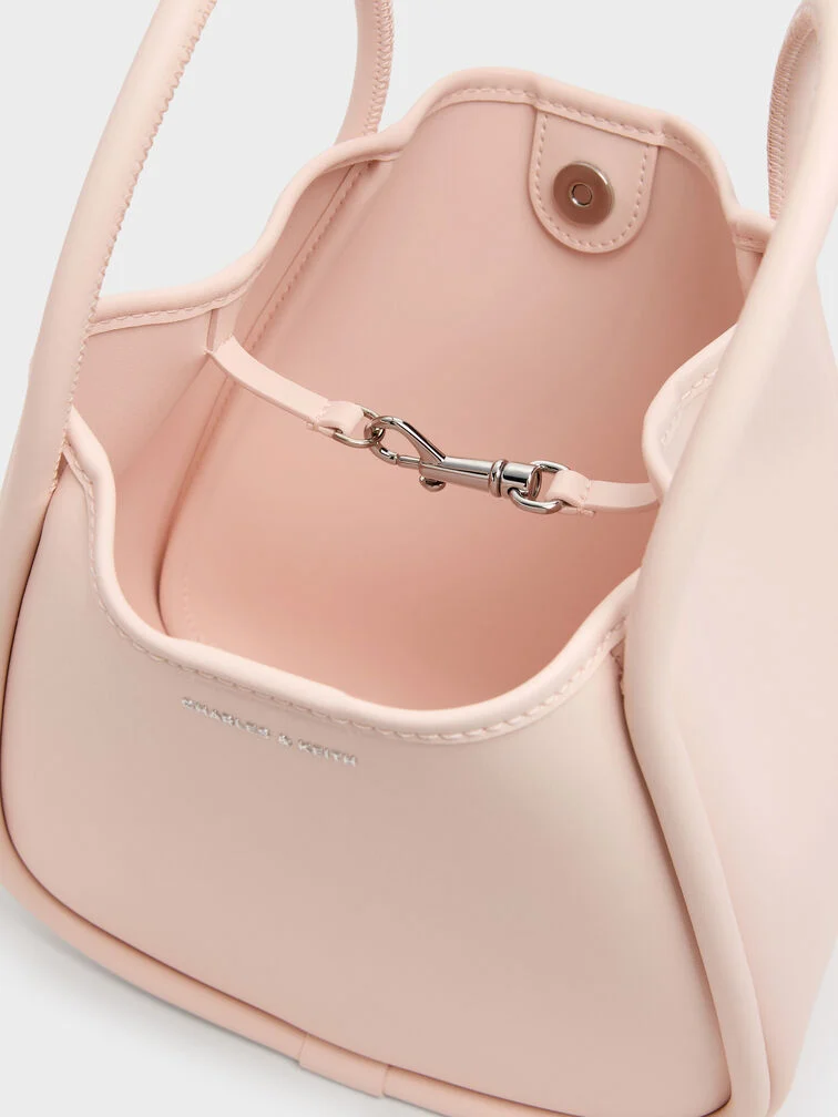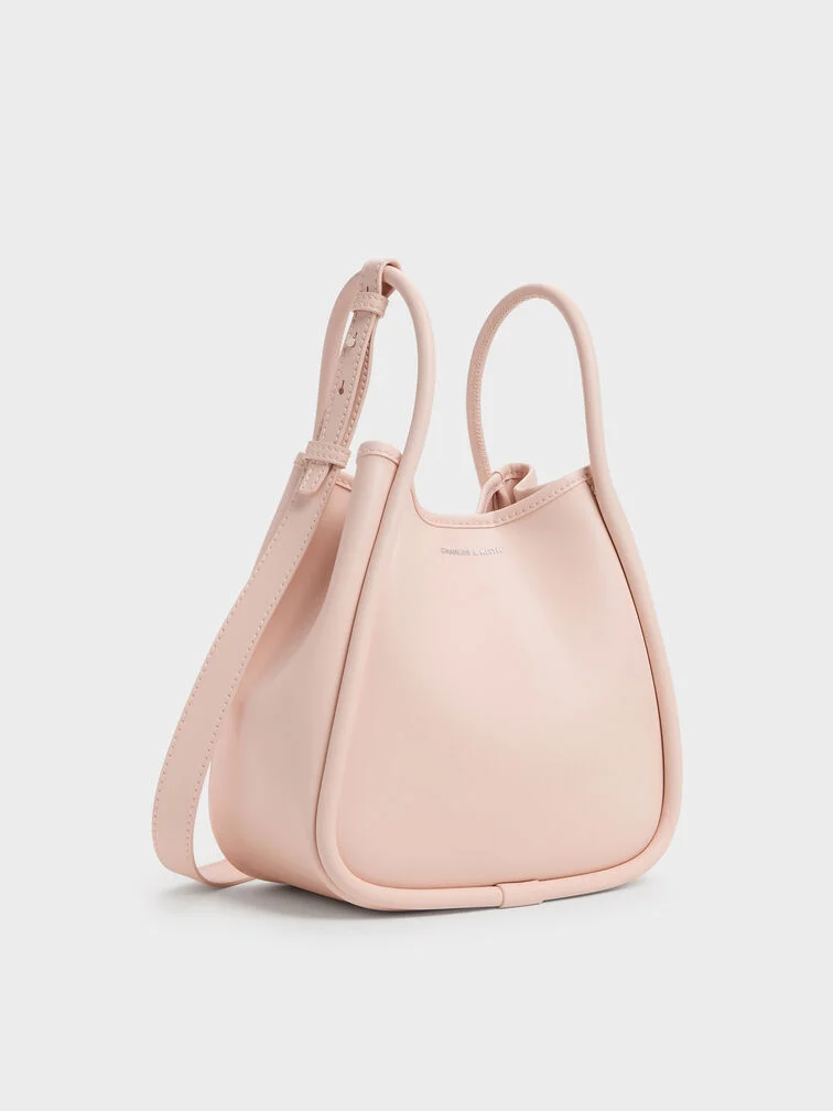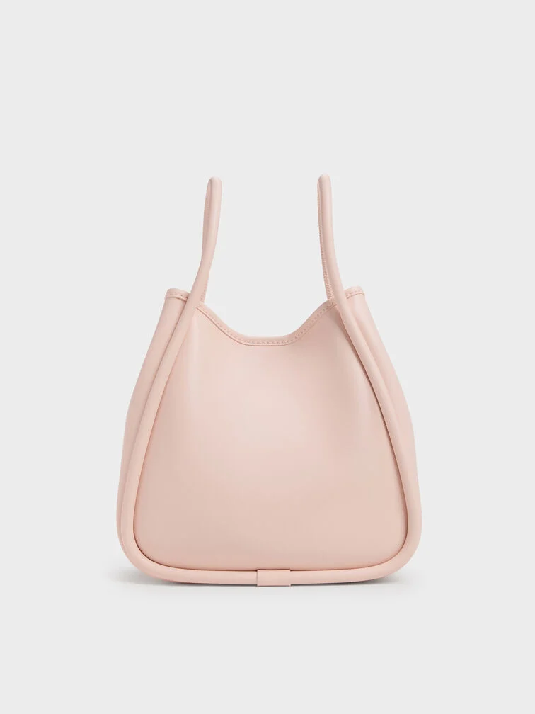 This mini Lyla tubular tote bag in soft pink features a softly structured silhouette, distinctive tubular straps and a generously sized interior that can easily hold all your daily essentials. A great bag to add to your spring-summer wardrobe, it will pair especially well with pastel-hued outfits.