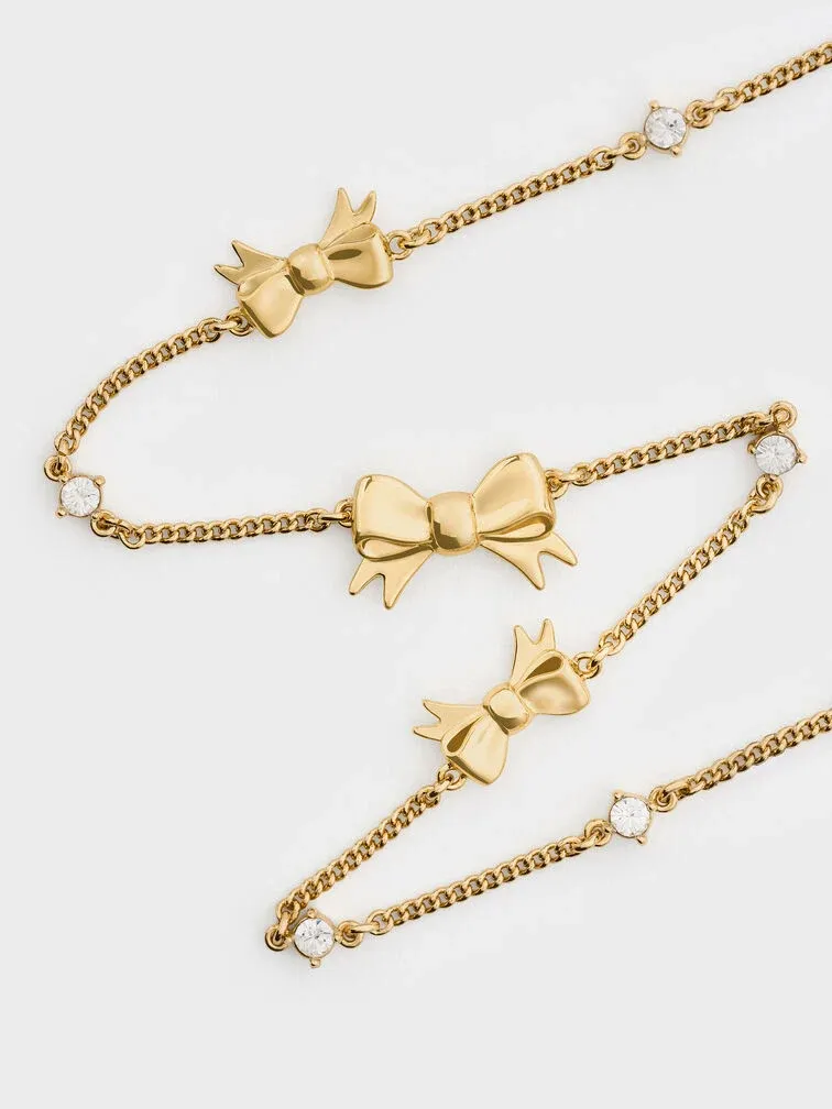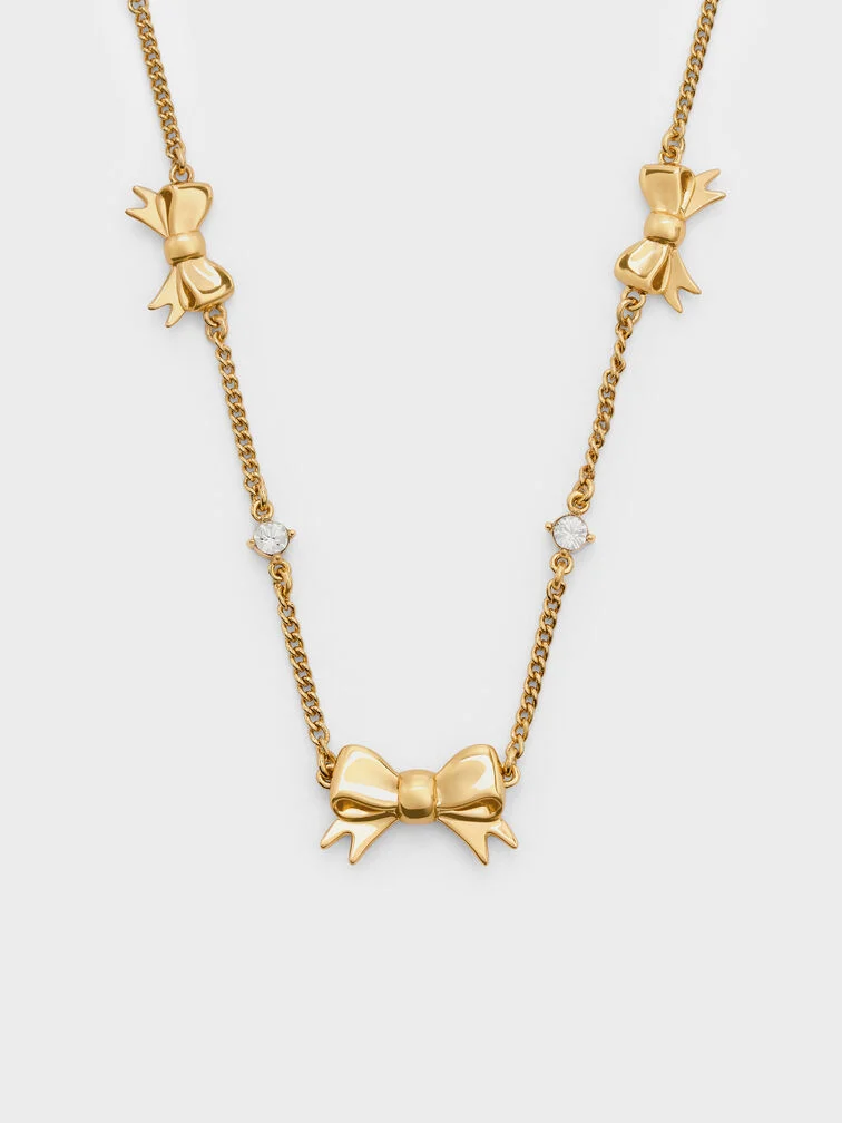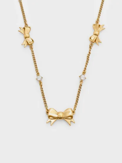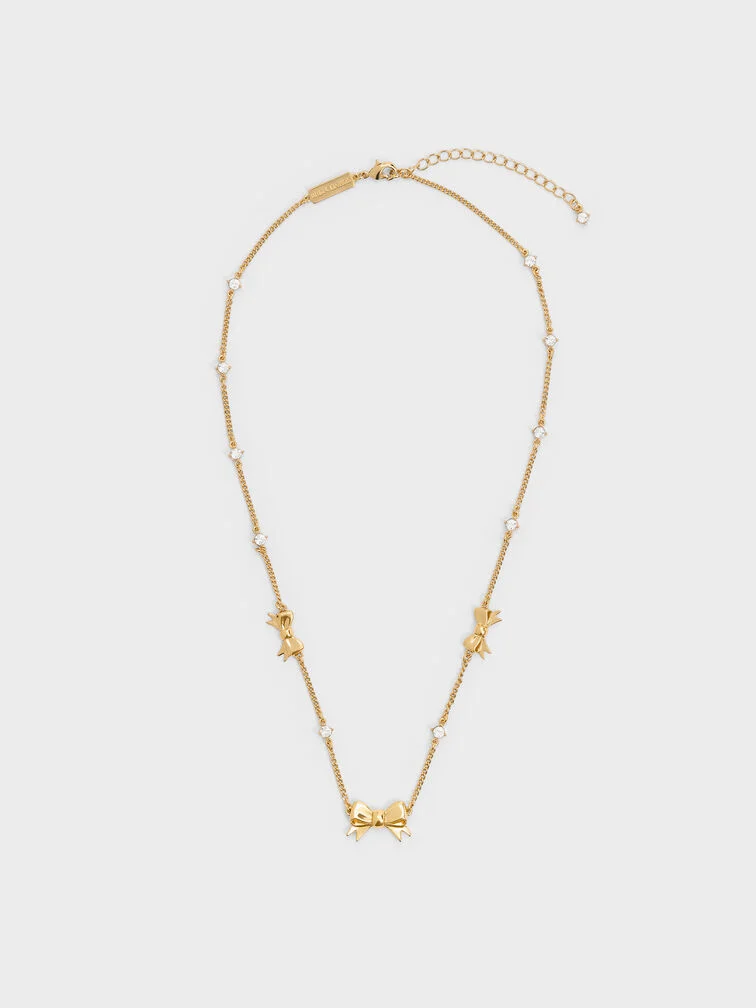 Paige Bow Crystal Necklace - gold