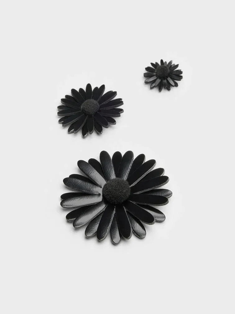Make your bags and shoes your own with the Polly appliques set. Featuring floral appliques of different designs and sizes, they are made to complement the Polly Mary Janes and Perline Boxy Top Handle Bag. Each floral applique features a velcro patch so you can attach them easily onto the bag or shoe -- allowing you to customise the arrangement and switch them up to match your look and mood.