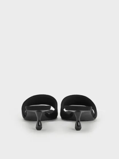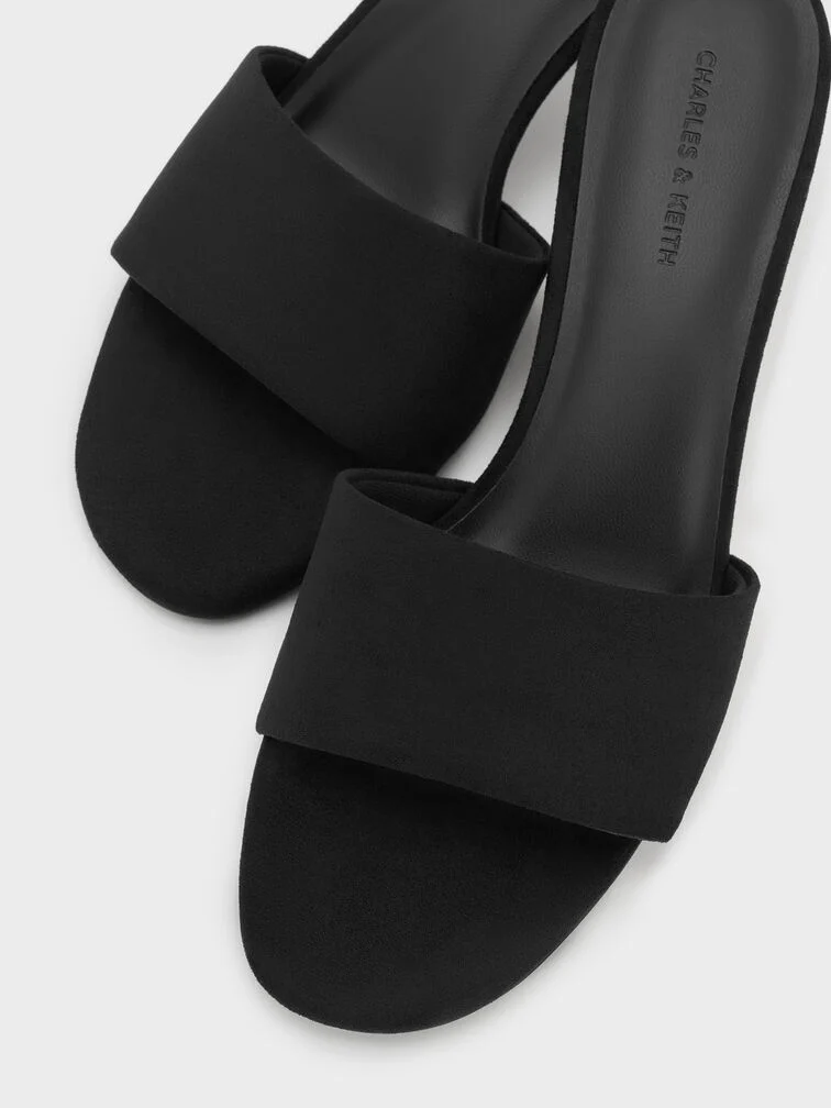 Ruthie Faux Suede Heeled Mules - black textured
