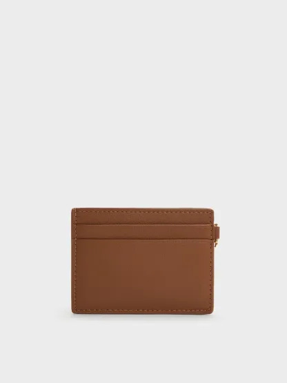 This Scottie card holder in chocolate features a compact construction, a shiny gold-tone lock charm and a short buckled handle at the side. Use it to keep your cards and cash neatly and securely in one place.