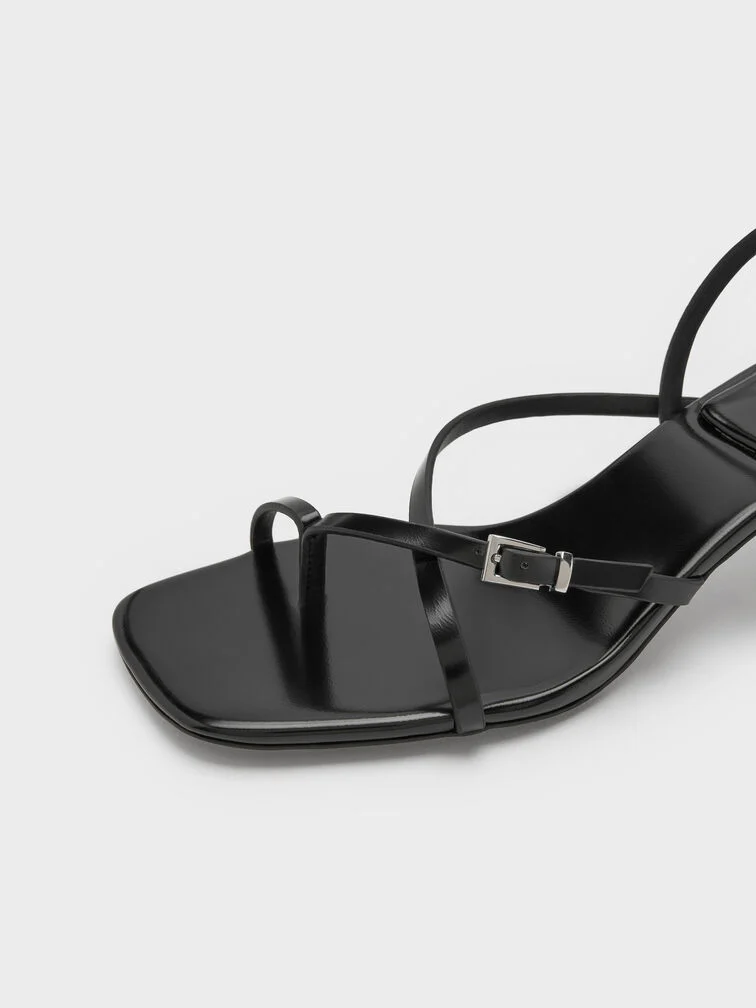 Strappy Thong Kitten Heels - black box