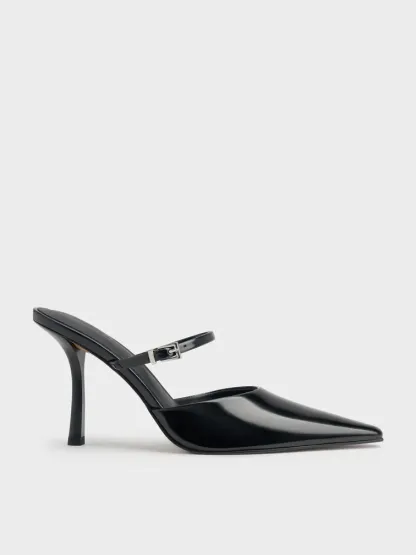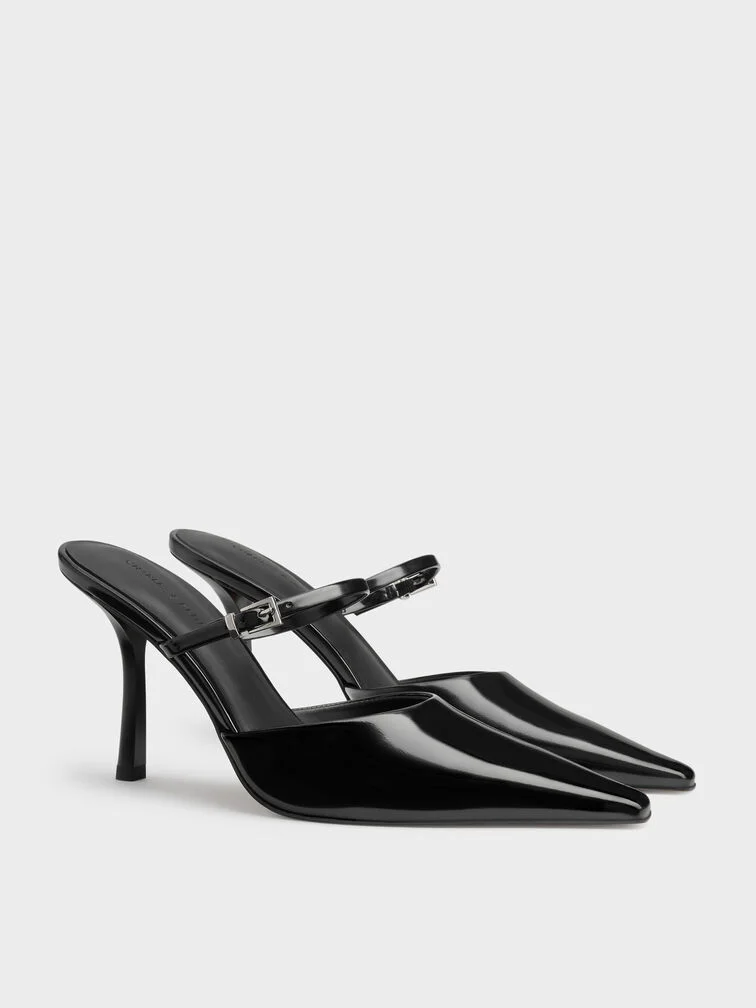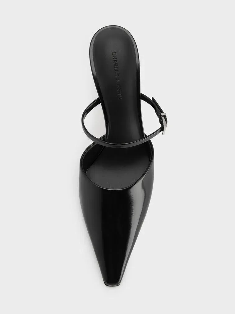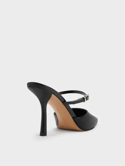 Tapered Square-Toe Heeled Mules - black box