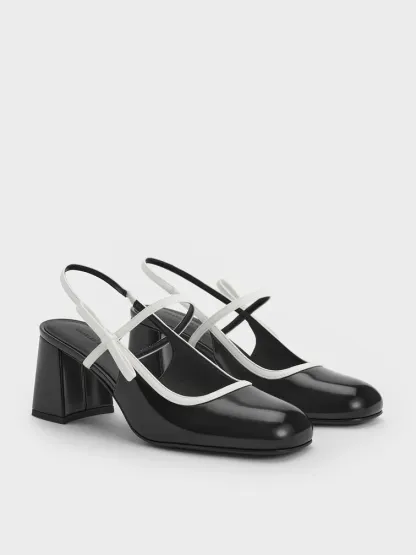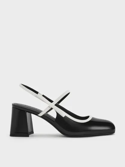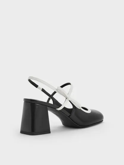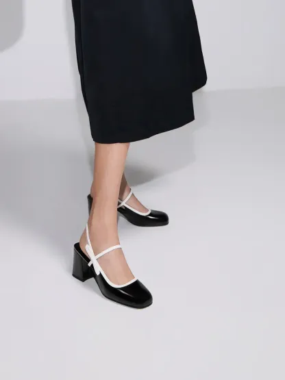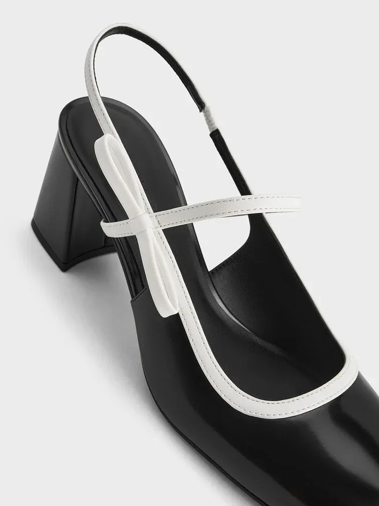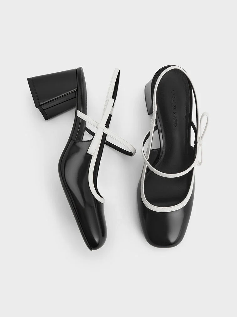 Two-Tone Bow Slingback Mary Jane Pumps - black box