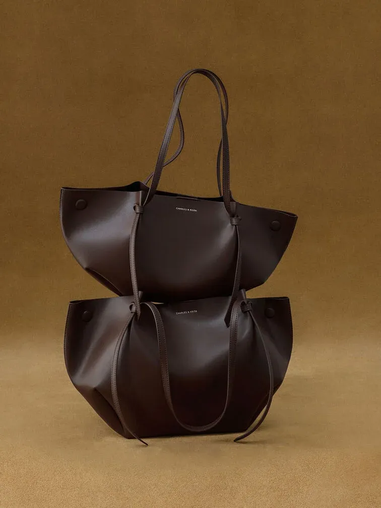 This XL Calla tote bag in espresso brown features a wide profile and a double-handle design. It also comes with an additional pouch. Use them to organise your daily essentials while keeping your look sharply intentional.