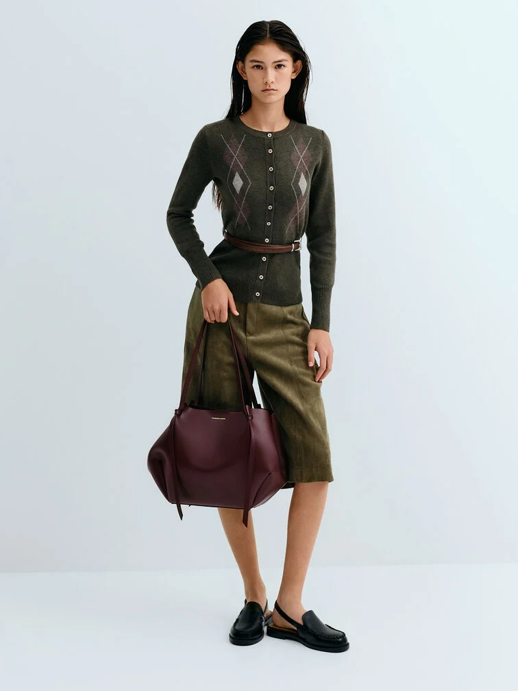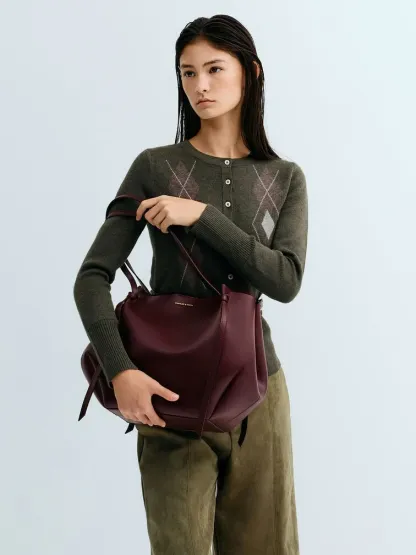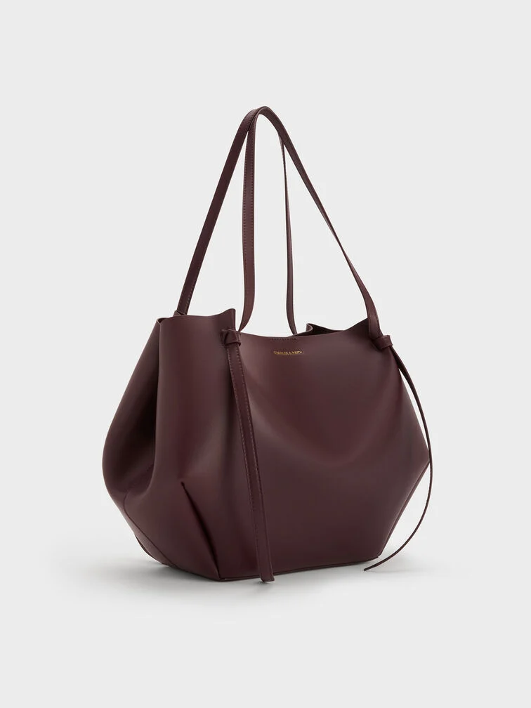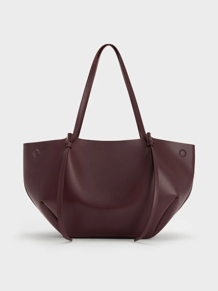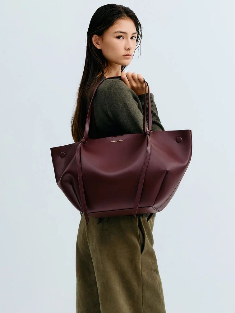 This XL Calla tote bag in wineberry red features a softly structured silhouette, a capacious interior and a double-handle design. It also comes with a detachable pouch. Use it to add rich colour and sophistication to your fall-winter ensembles.