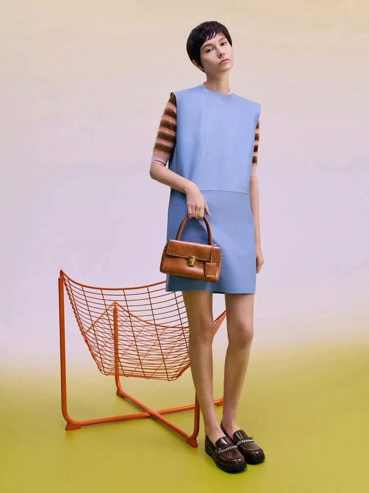 This Acelynn tote bag in tan features a rope-chain strap, a distinctive metallic buckle, double handles, and a front-flap design with a push-lock closure. Stylish and versatile, it will hold your essentials in style from day to night.