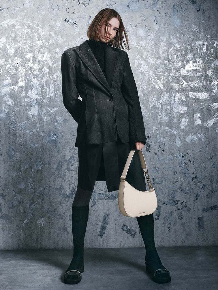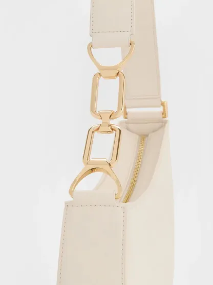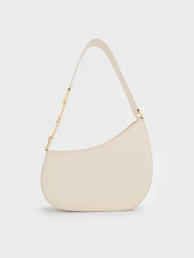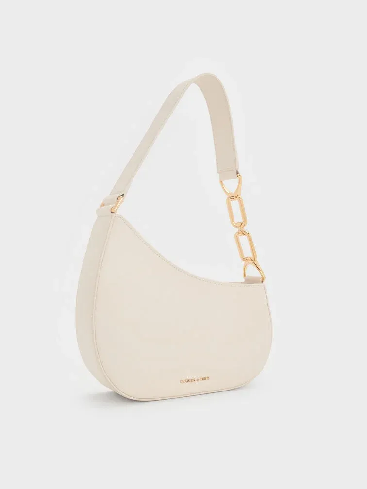 This cream Agatha shoulder bag features an asymmetrical half-moon design and gold-tone chain accents on its strap -- it is ideal for elevating any outfit. The minimalist design makes it easy to style. It also provide ample space for everything you need in a day.