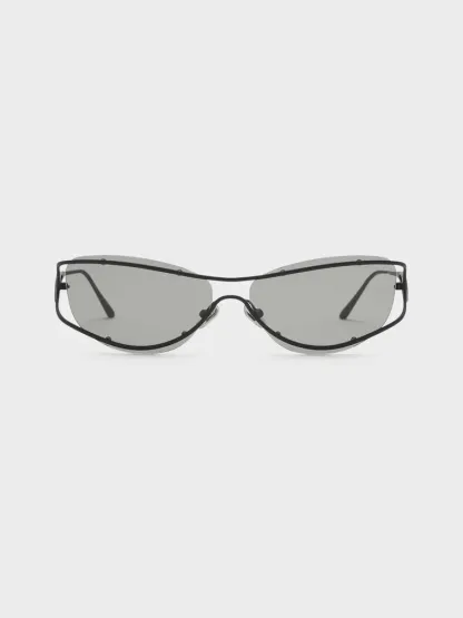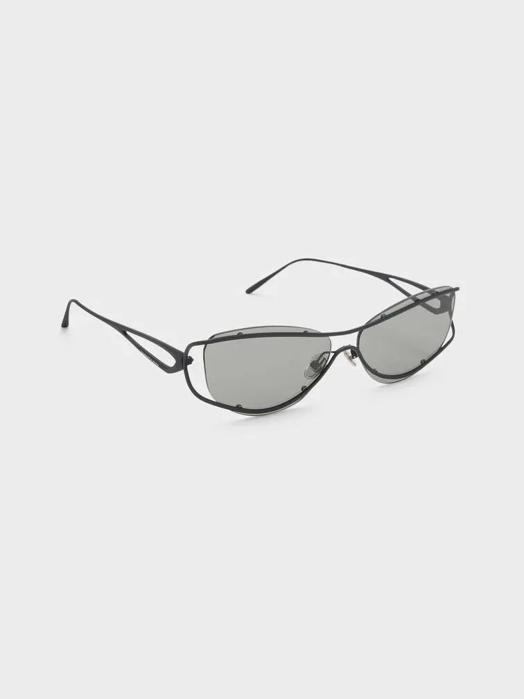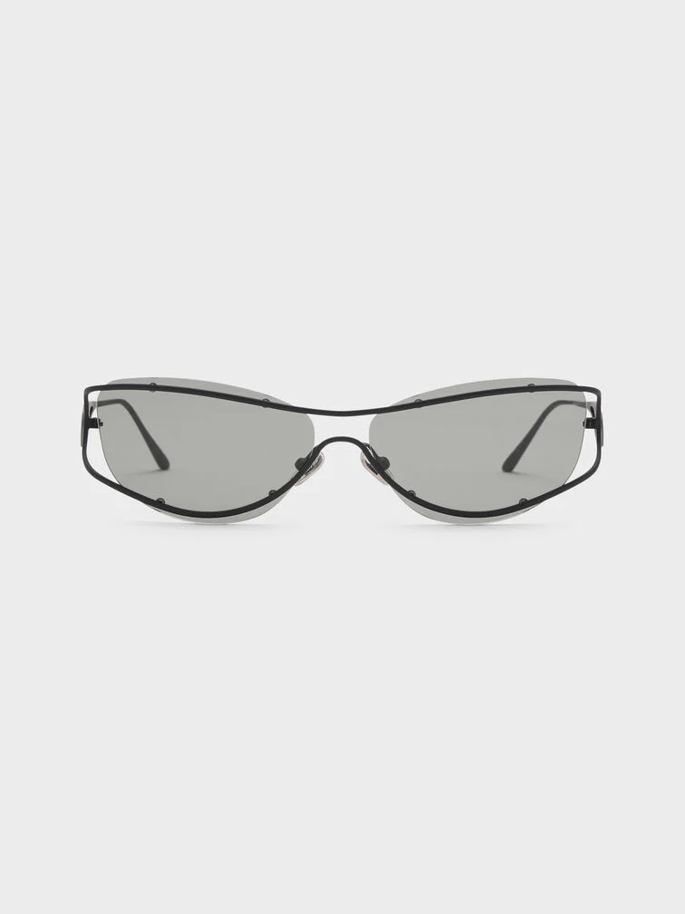 These Ainsley sunglasses in black feature geometric metal frames, cut-out details, tinted lenses and a modern, minimalist design. They will protect your eyes and add a fashion-forward element to all of your looks.