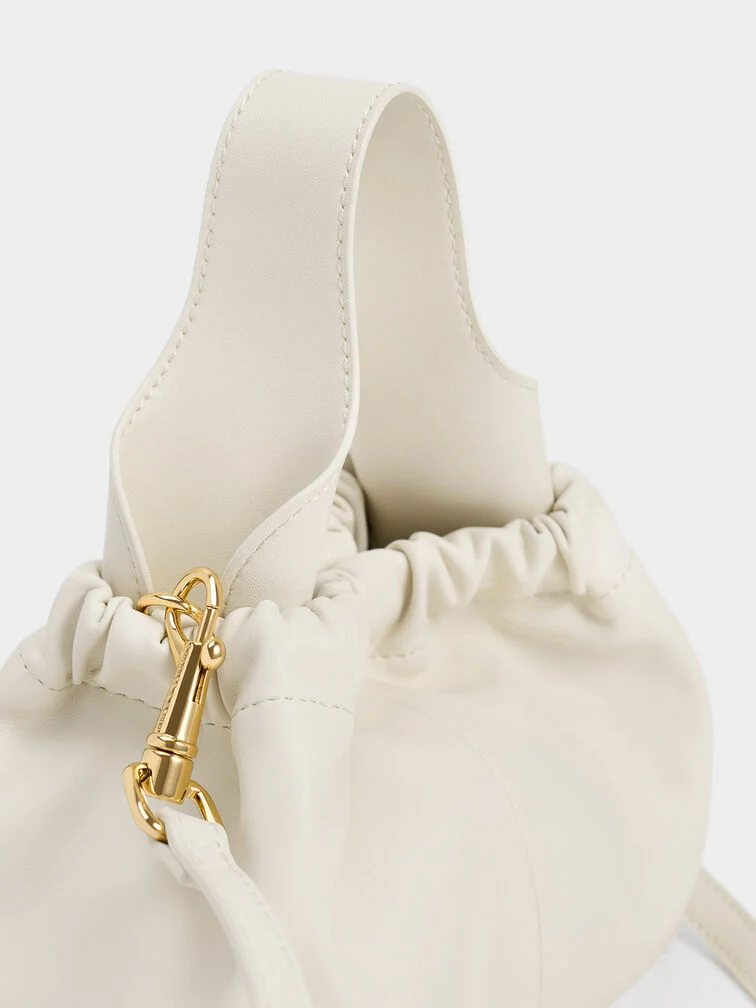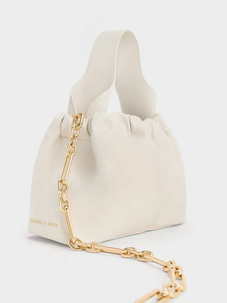 Ally Ruched Chain-Handle Bag - cream