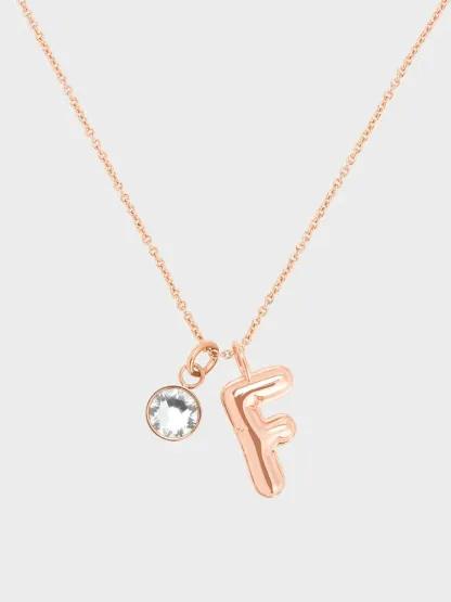 Personalise your look with an alphabet F charm pendant. Rendered in sweet rose gold, this pretty trinket can be used on necklaces or earrings to add just the right amount of sparkle to everyday ensembles. Consider pairing it with a classic chain necklace or classic hoop earrings for a personalised touch.