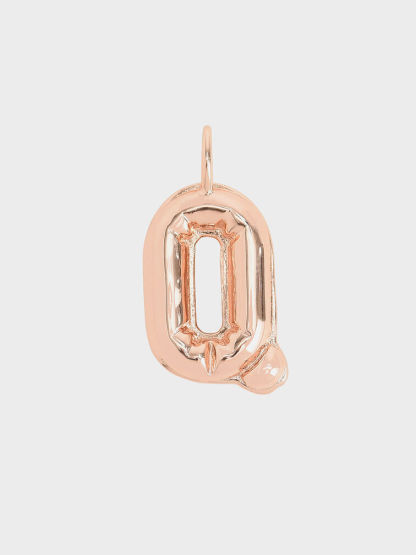 Personalise your look with an alphabet Q charm pendant. Rendered in sweet rose gold, this pretty trinket can be used on necklaces or earrings to add just the right amount of sparkle to everyday ensembles. Consider pairing it with a classic chain necklace or classic hoop earrings for a personalised touch.