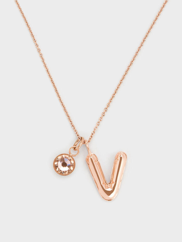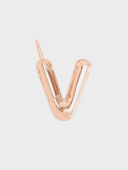 Personalise your look with an alphabet V charm pendant. Rendered in sweet rose gold, this pretty trinket can be used on necklaces or earrings to add just the right amount of sparkle to everyday ensembles. Consider pairing it with a classic chain necklace or classic hoop earrings for a personalised touch.