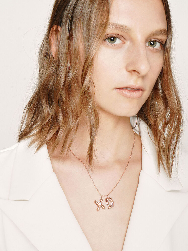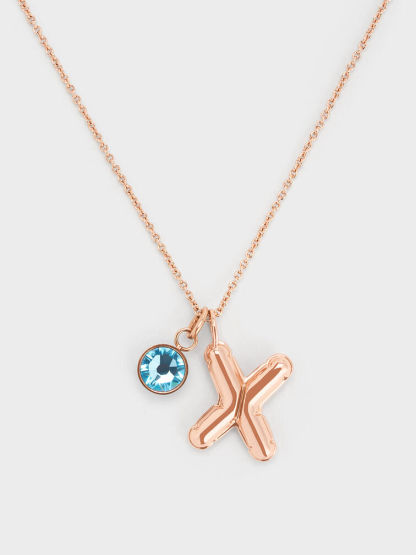 Personalise your look with an alphabet X charm pendant. Rendered in sweet rose gold, this pretty trinket can be used on necklaces or earrings to add just the right amount of sparkle to everyday ensembles. Consider pairing it with a classic chain necklace or classic hoop earrings for a personalised touch.