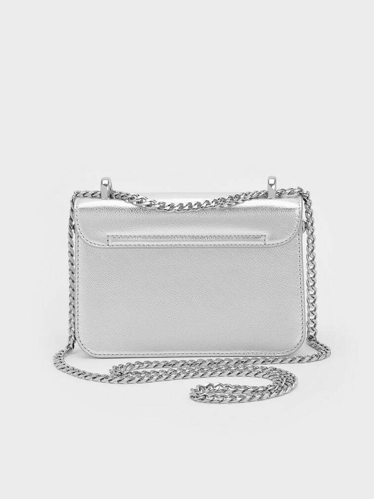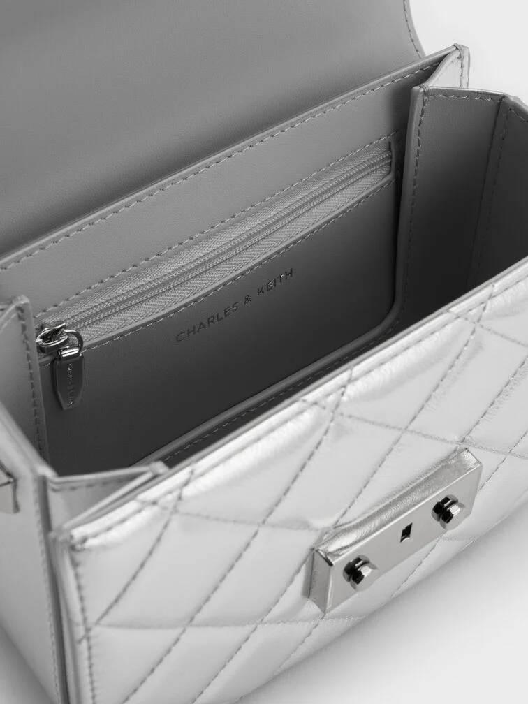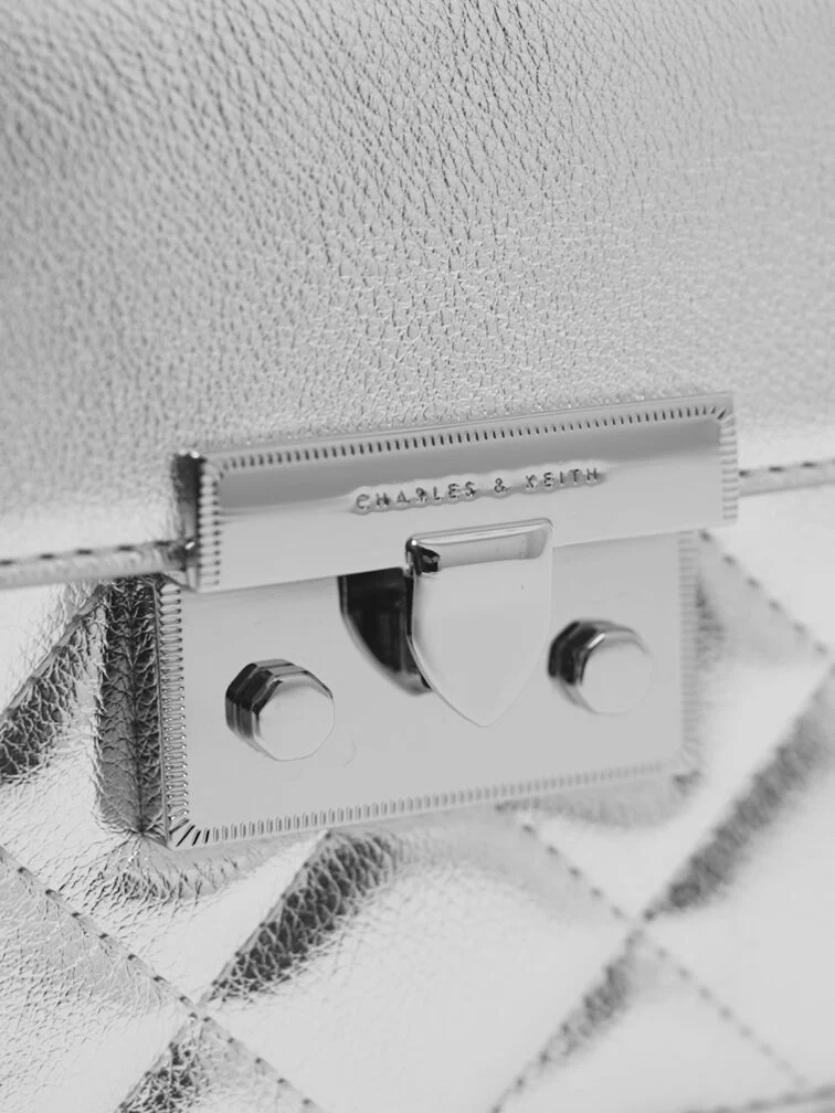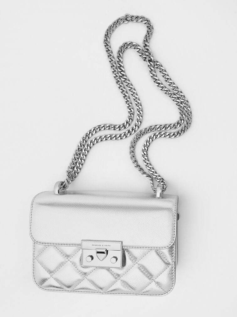 Alva Metallic Quilted Chain-Handle Bag - silver