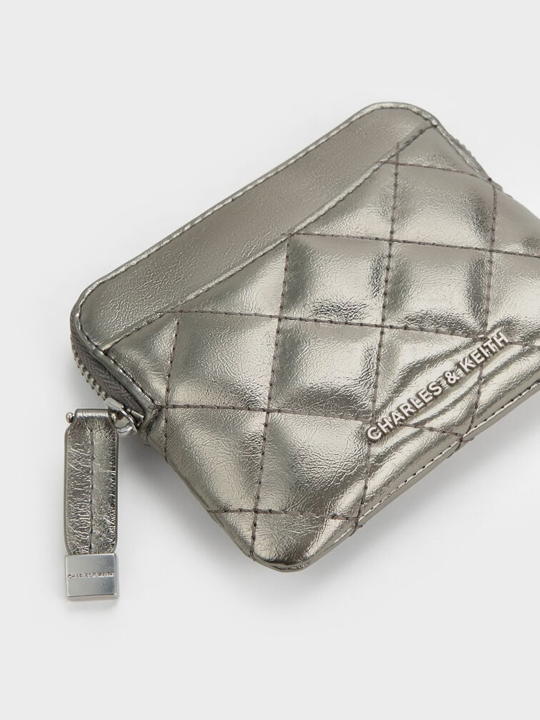 Alva Metallic Quilted Top-Zip Card Holder - pewter