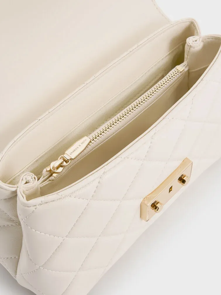 Alva Quilted Top Handle Bag - cream