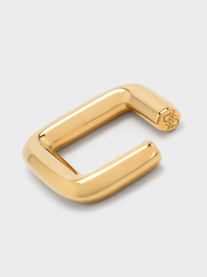 If you have a soft spot for simple, minimalist accessories, this angular ring will be a great addition to your jewellery collection. It features a slim band that has been artfully shaped into a square with a unique open design. With a polished gold-tone finish, this piece will add a touch of glamour to any look. Wear it on its own or stacked with other rings for a statement look.
