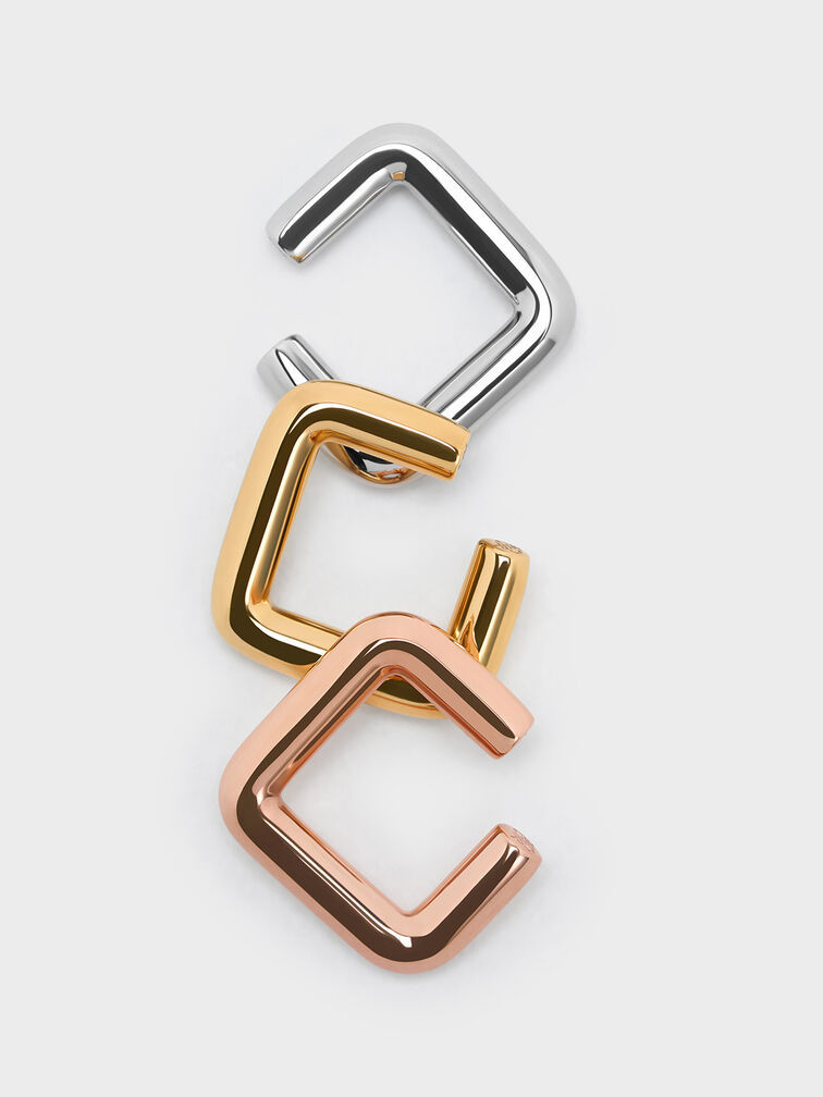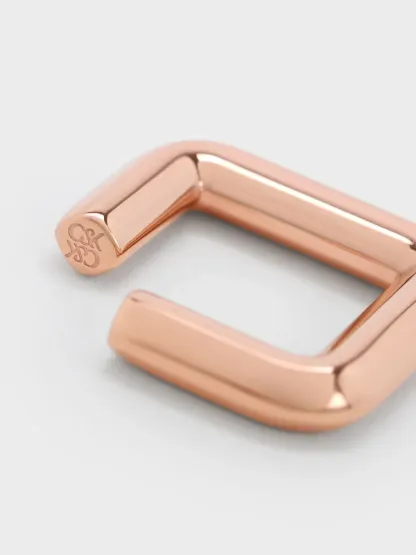 For an edgier and sculptural-inspired take on a classic band ring, this angular ring checks all the boxes. It has a slim, minimalist design that has been artfully shaped into a square with a unique open design. With a rose gold-tone finish, this piece will add understated polish to any look. Wear it on its own or stacked with other rings for a statement look.