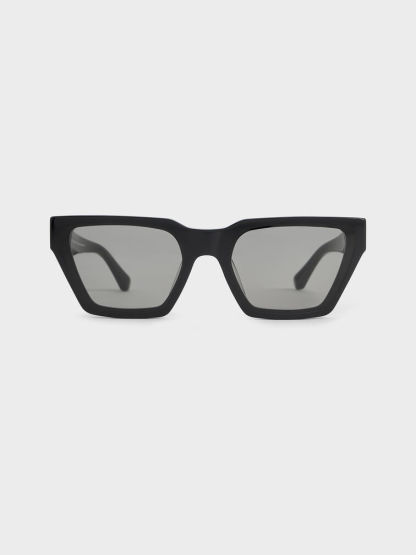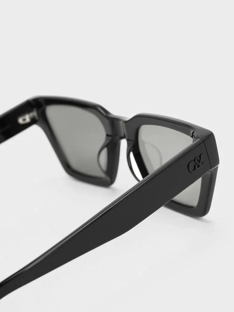 Let these sunglasses complete any look with their clean and crisp silhouette. They feature a sleek, angular frame that has a sharp, polished aesthetic. This frame will also easily complement most face shapes, making them appear more streamlined. The classic black frames and tonal lenses give this pair a timeless appeal that will never go out of style.