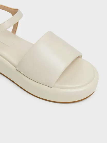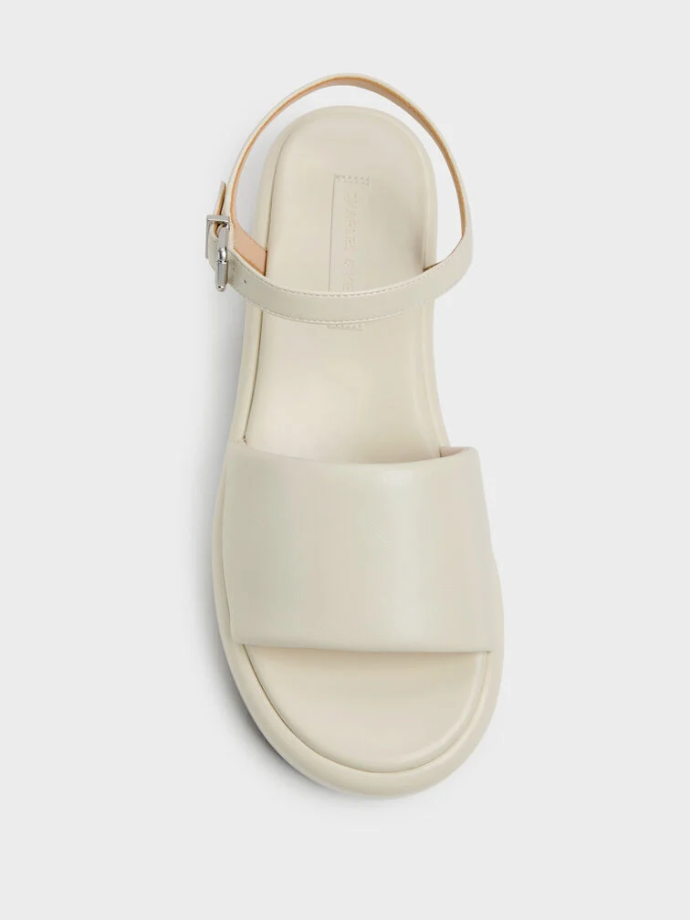 These chalk-white flatform sandals feature a minimalist design, with wide straps across the top of the feet and slim, adjustable ones around the ankles. They are the perfect footwear choice for laid-back off-duty days, when you want to look chic without compromising on comfort.