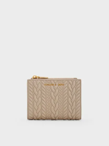 Apolline Textured Top-Zip Wallet - taupe