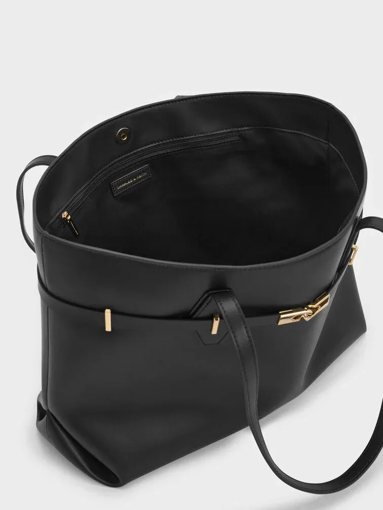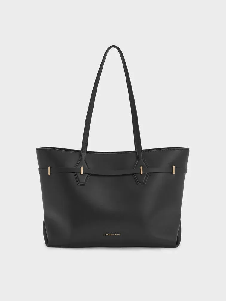 This Arlet tote bag in black features double handles, a belted detail and a softly structured body. Carry it with sharp workday looks to lend quiet confidence and organisational ease to your everyday routine.