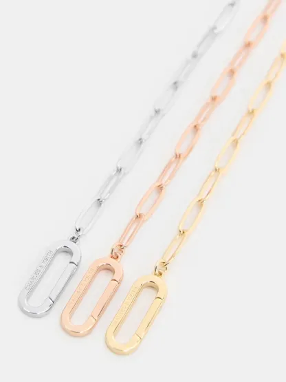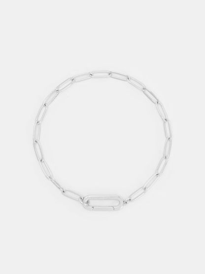 This Arleth bracelet in silver features a chain-link design and an oblong pendant right at the centre. Layer it with other bracelets to create a striking and statement-making arm stack.