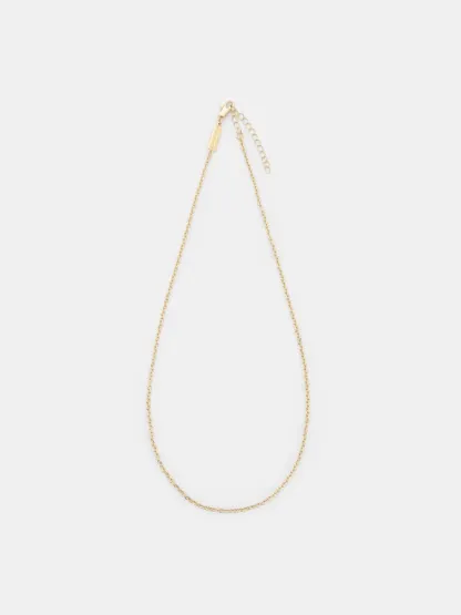 This Arleth necklace in gold consists of a single delicate chain -- its length can be adjusted. It is a classic and timeless piece that will elevate any outfit with subtle shine. Wear it on its own or layered with other necklaces.