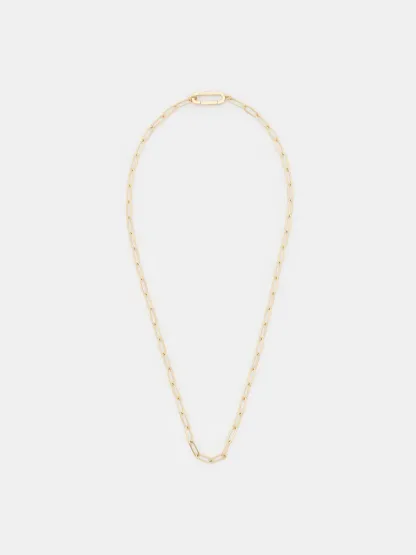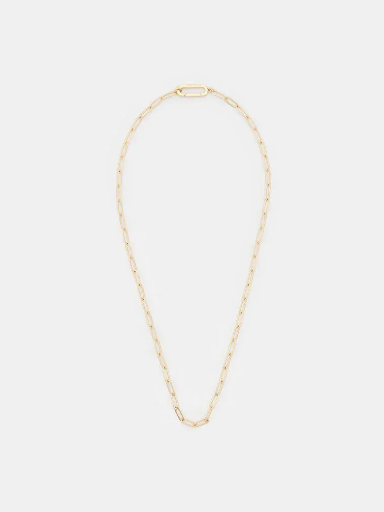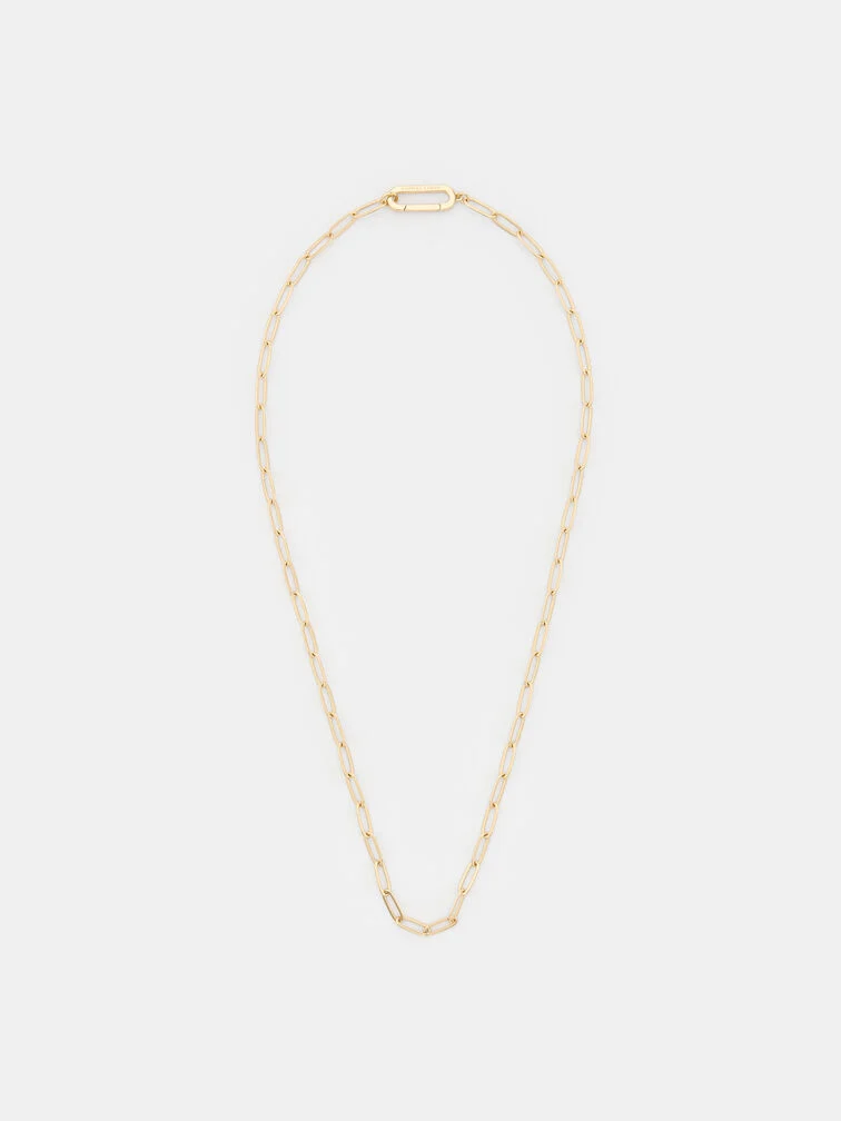This Arleth necklace in gold features a chain-link design and an oblong pendant at its centre. It will elevate simple blouses and your favourite knitted tops with its simple yet striking aesthetic.