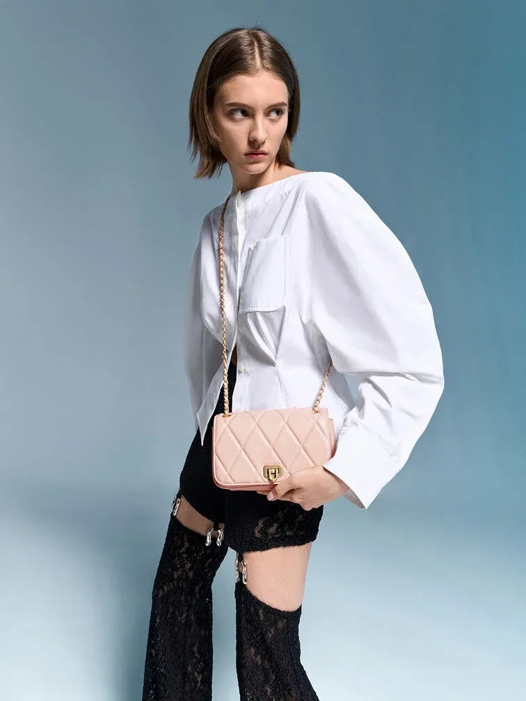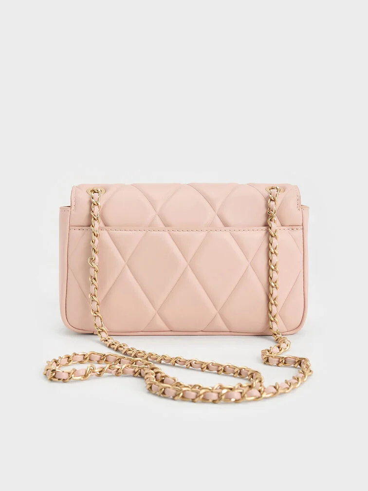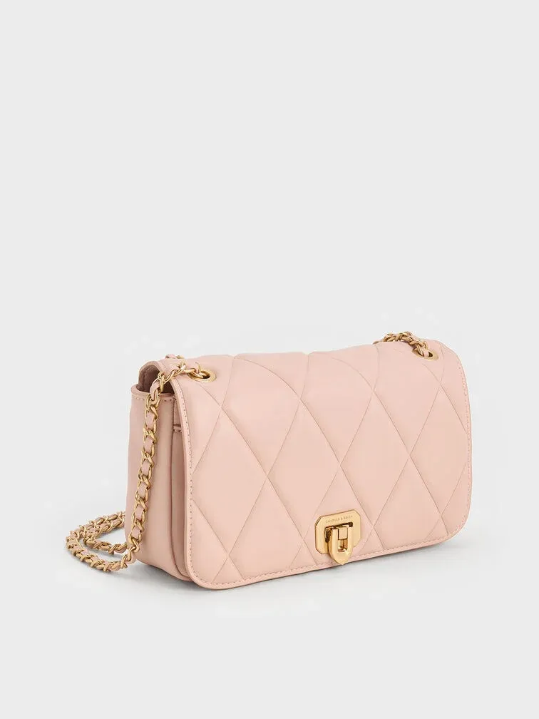 Arwen Diamond-Quilt Shoulder Bag - light pink