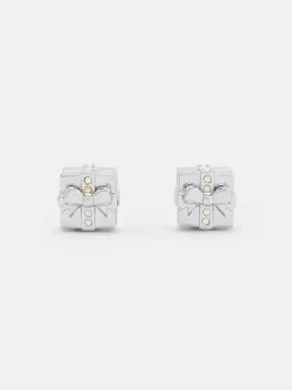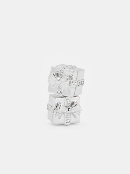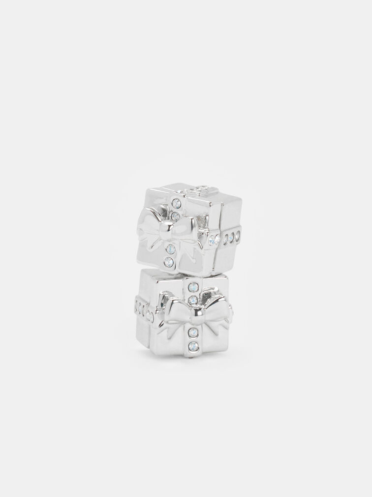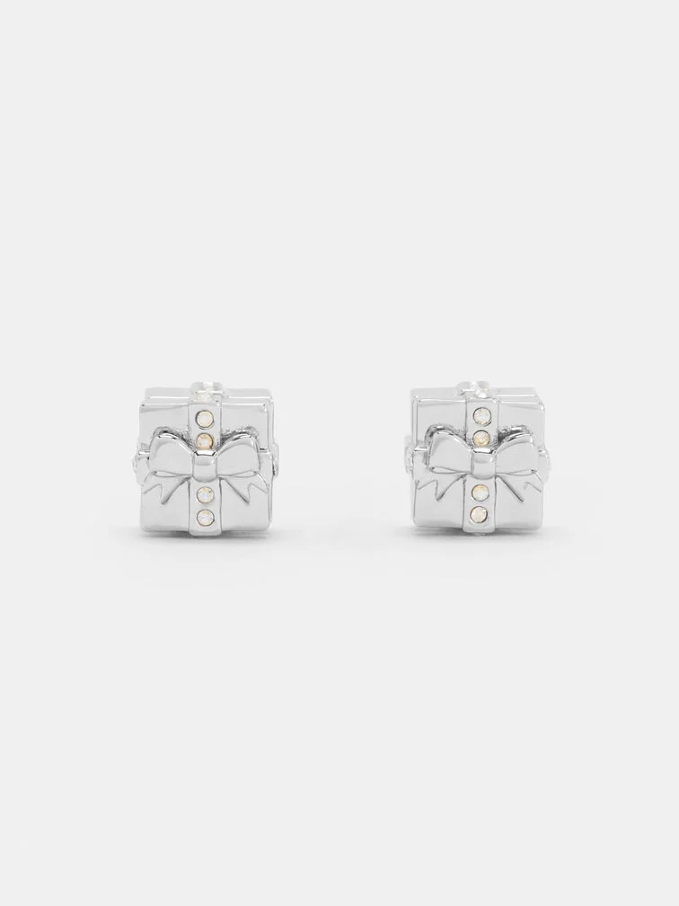 These Athalia stud earrings in silver feature crystal-embellished gift-box motifs and a polished finish. Let them elevate monochromatic ensembles with their cool-tone shine and understated festive charm during the year-end season.