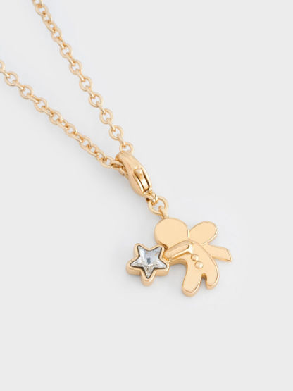 This Athalia charm in gold features a gingerbread-fairy motif, a crystal star and a lobster clasp. This charm can be attached to the Arleth oblong bracelet or Arleth oblong necklace, along with other charms from the Athalia collection, to create a personalised charm bracelet or necklace. Alternatively, clip it onto the Arleth chain necklace and wear it
