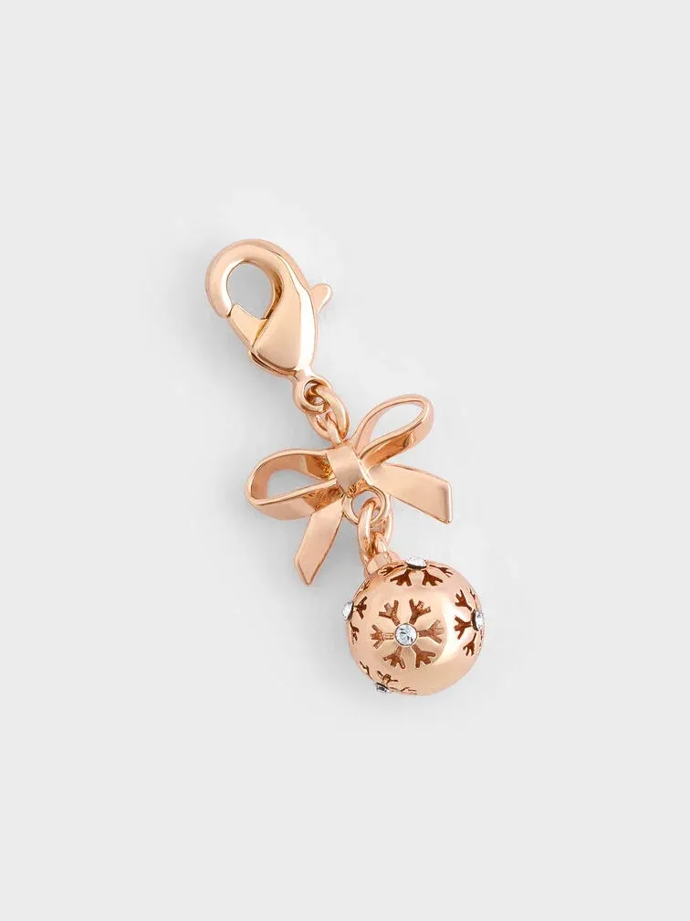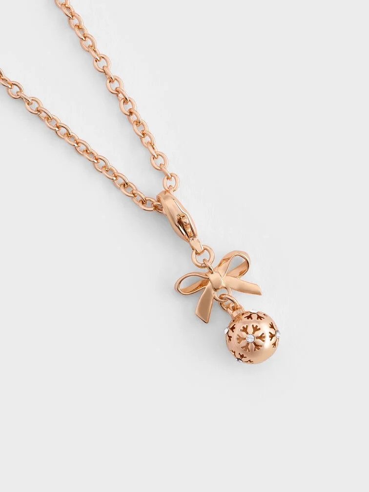 This Athalia charm in rose gold features a snowflake-motif ball, crystal embellishments and a dainty bow. This charm can be attached to the Arleth oblong bracelet or Arleth oblong necklace, along with other charms from the Athalia collection, to create a personalised charm bracelet or necklace. Alternatively, clip it onto the Arleth chain necklace and wear it
