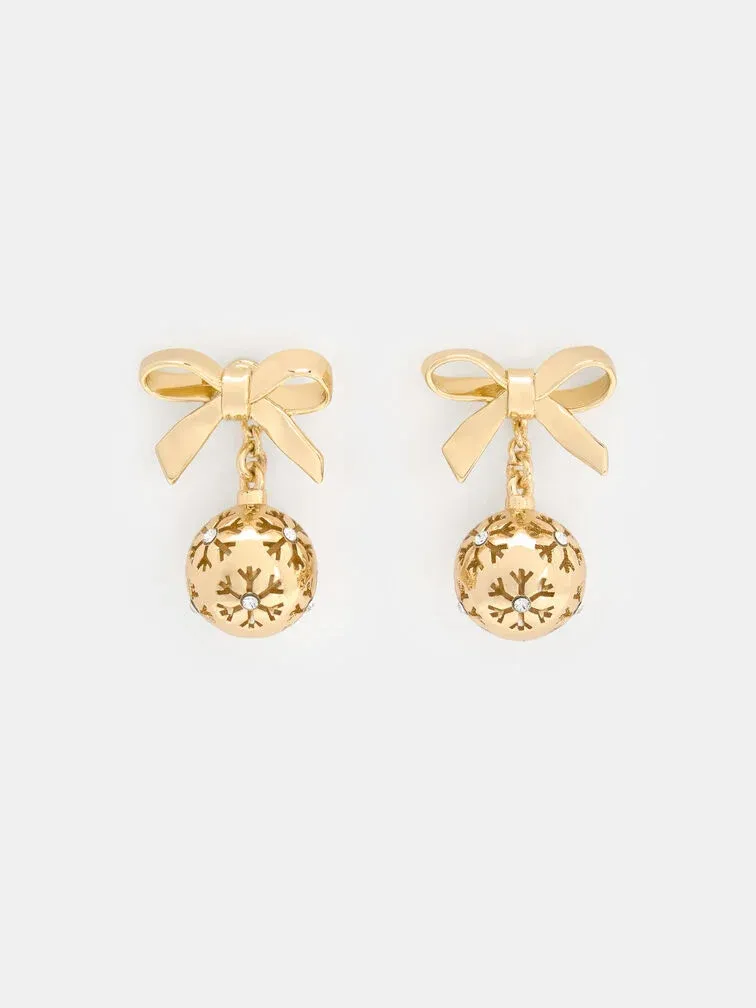 These Athalia drop earrings in gold feature delicate bows and snowflake balls that are embellished with crystals. Let them bring cheerful seasonal charm and eye-catching shine to your outfits during the fall-winter months.
