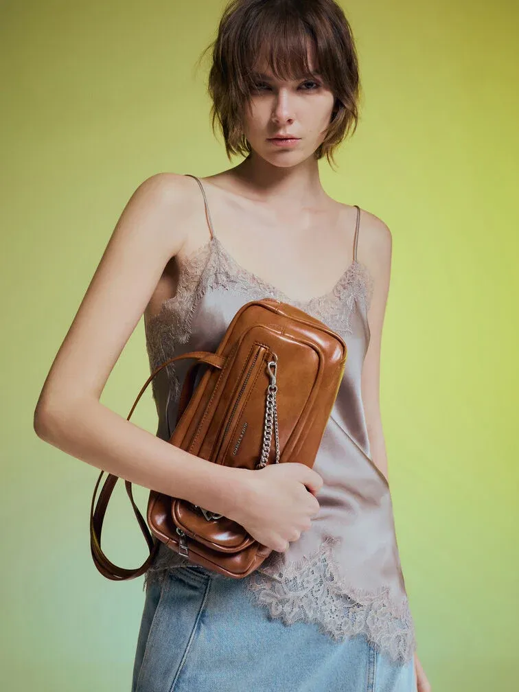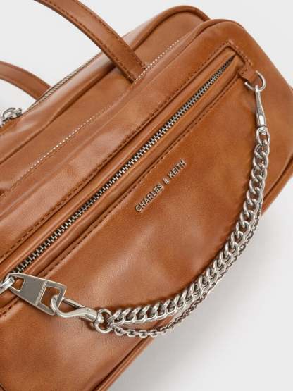 Atwood Chain Elongated Shoulder Bag - distressed tan