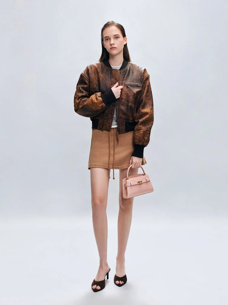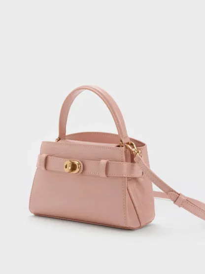 Aubrielle Croc-Effect Belted Top Handle Bag - light pink