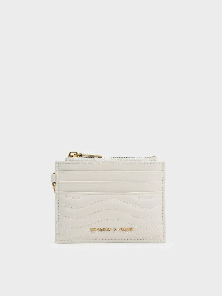 Aubrielle Wavy-Stitch Card Holder - cream