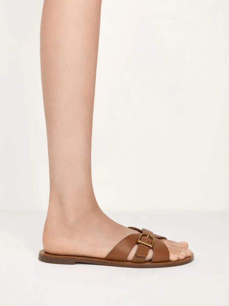 Casual elegance at its best, these brown slide sandals are set to be your favourite shoes this season. Featuring sophisticated belted straps, their minimalist slip-on design promises comfortable wearability on hot summer days. Feel free to dress them up or down.