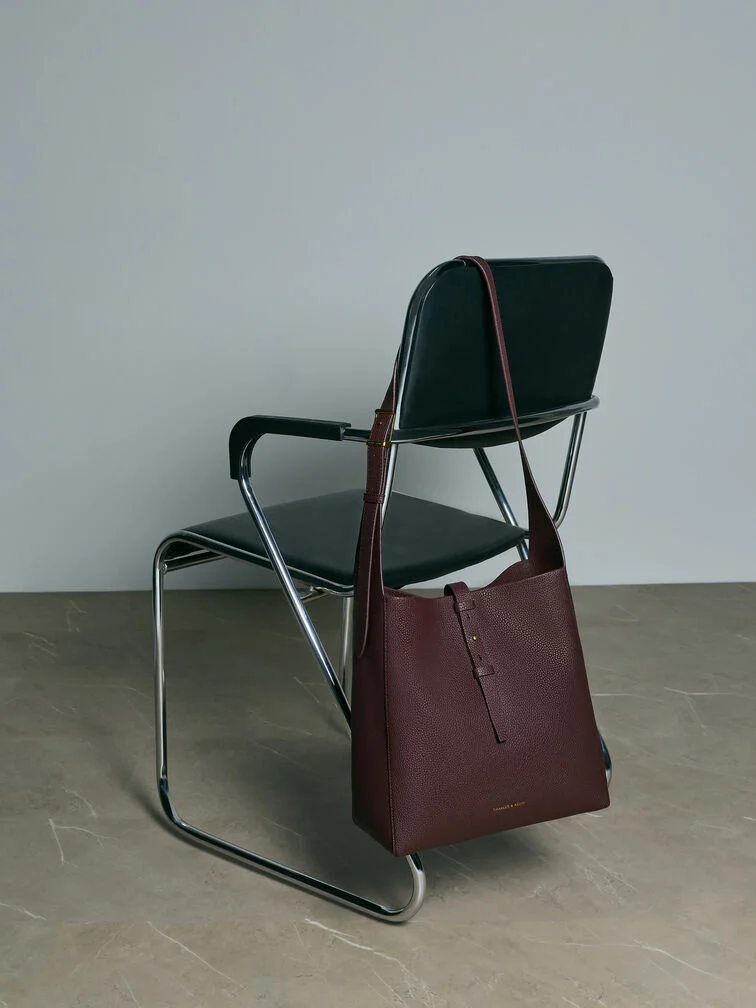 This Beryl hobo bag in wineberry red features a belted design. Use it to add gentle definition to relaxed tailoring, creating a day-to-evening look that is quietly self-assured.