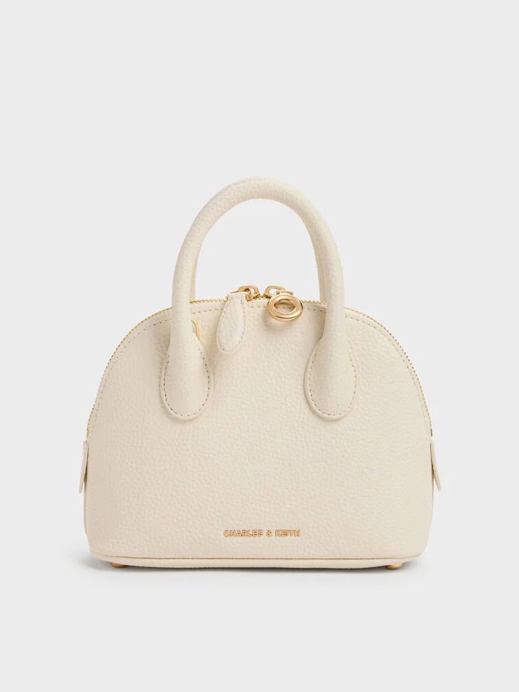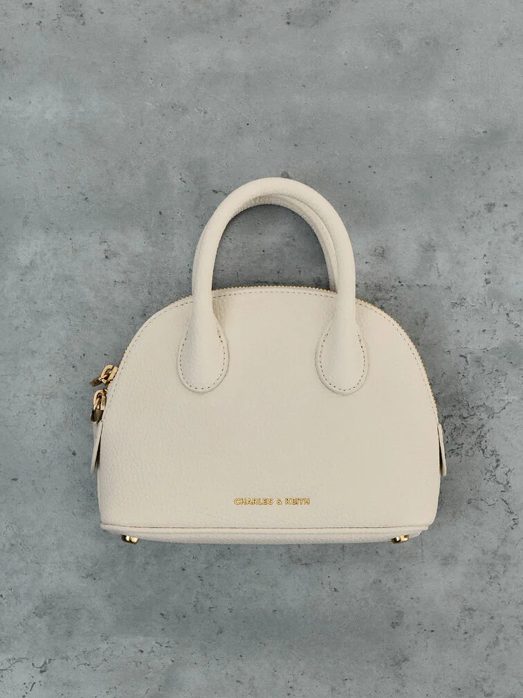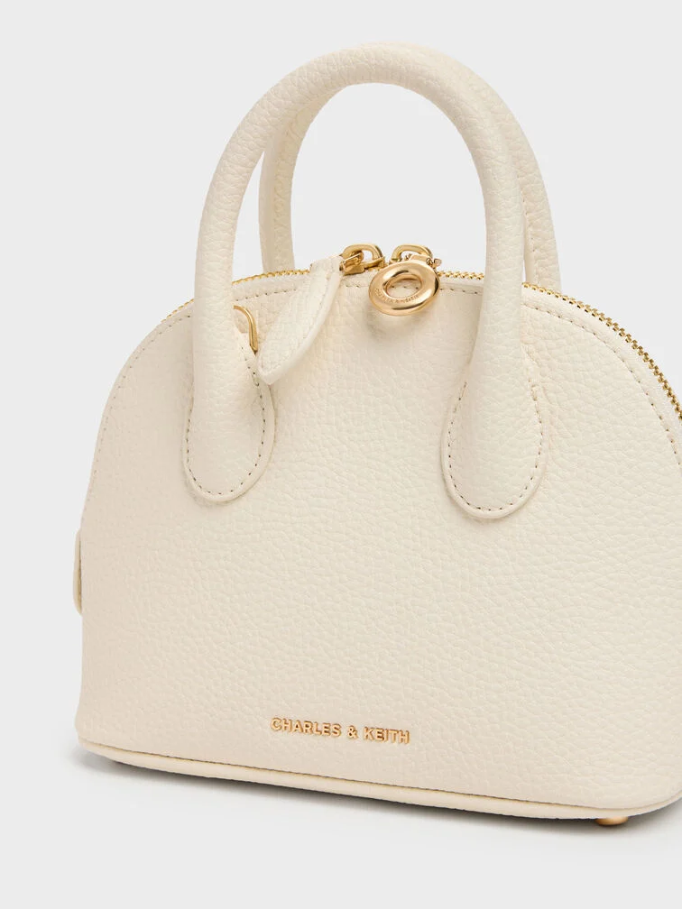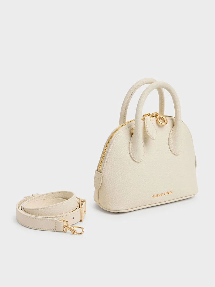 This Beryl bowling bag in cream features structured top handles, a rounded design, a two-way zip closure and a detachable shoulder strap. Use it to complete both daytime and evening outfits with effortless polish.