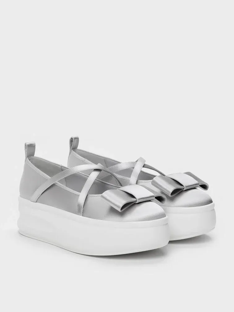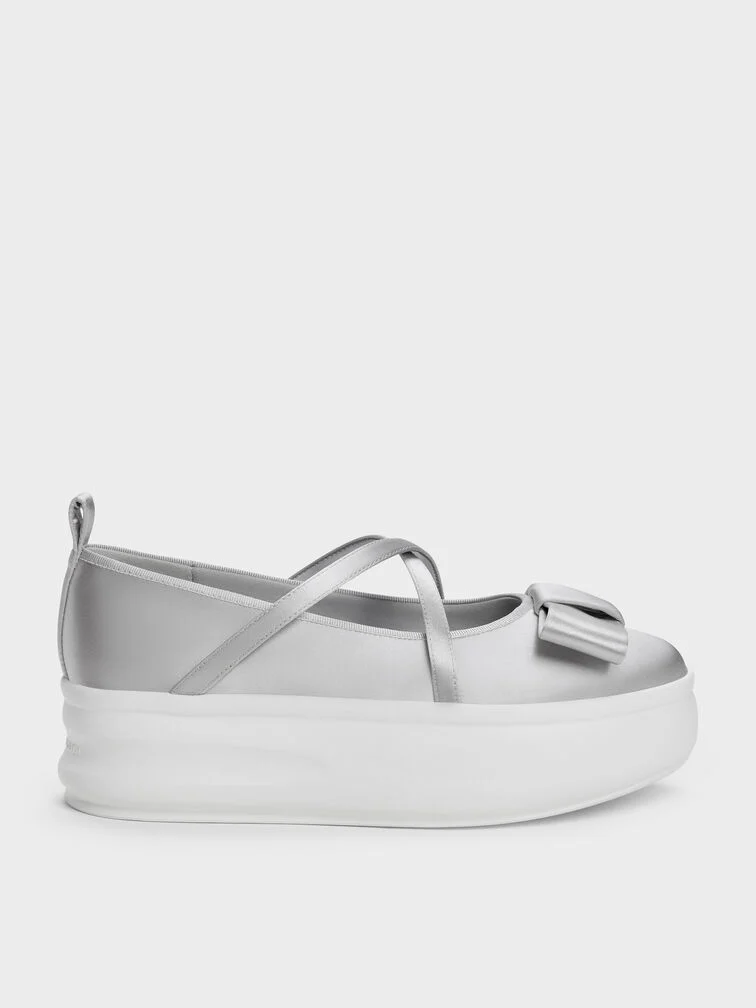 These Brantley Mary Janes in grey feature angular bow embellishments, thin crossover straps, thick bubble soles, and softly rounded toes. Pair them with your favourite jeans and casual dresses to create fun weekend looks.