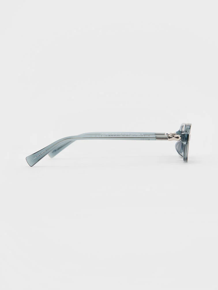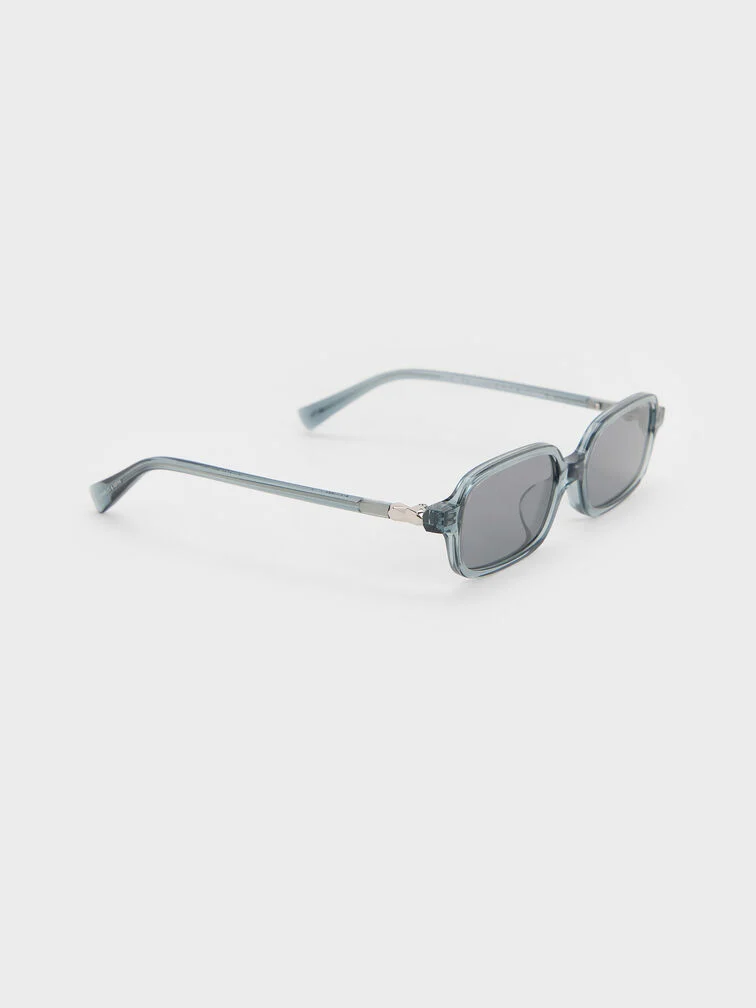 This pair of sunglasses will take any casual outfit from good to cool in an instant. The rectangular frames are accentuated by thin acetate rims with silver-tone accents on the sides for a contemporary touch. Plus, the tinted lenses offer UV protection.