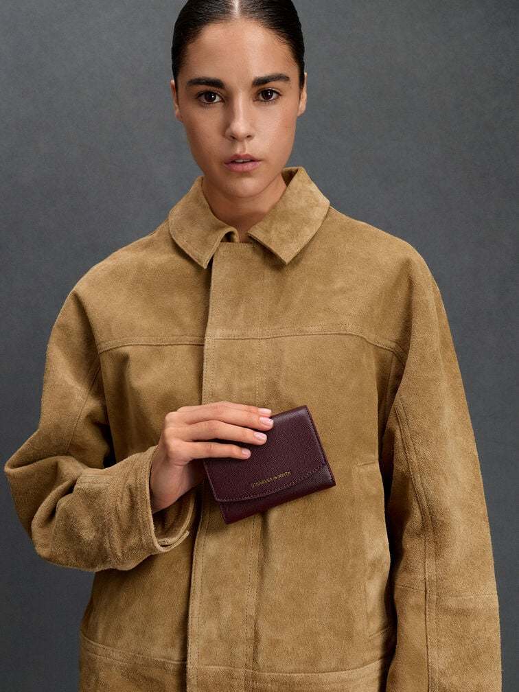 Make wineberry red your new neutral -- it adds a touch of sophistication to the Briony curved flap wallet, which features a compact size that belies its functionality. Opening to reveal multiple card slots and compartments, it will keep your essentials neatly organised, with a rear patch pocket for securing loose change.