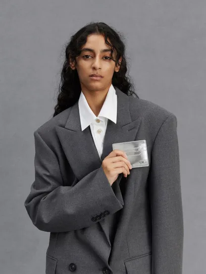 Carli Metallic Leather Multi-Slot Card Holder - silver