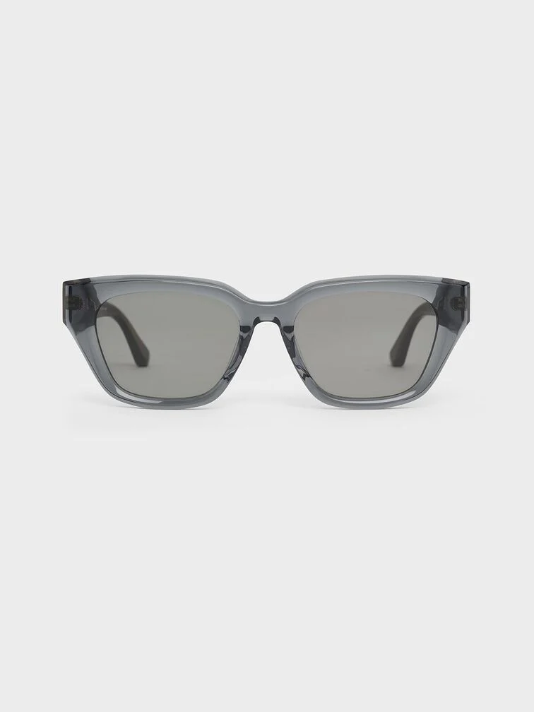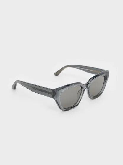 These cat-eye sunglasses feature thick, translucent frames paired with gradient tinted lenses for a cool, futuristic look. The cat-eye silhouette offers an uplifting effect, while the oversized frames add a touch of mysterious allure, perfect for achieving that Hollywood glamour. The minimalist design is elegantly adorned with a subtle hint of the branding logo on the temples, adding a touch of luxury.